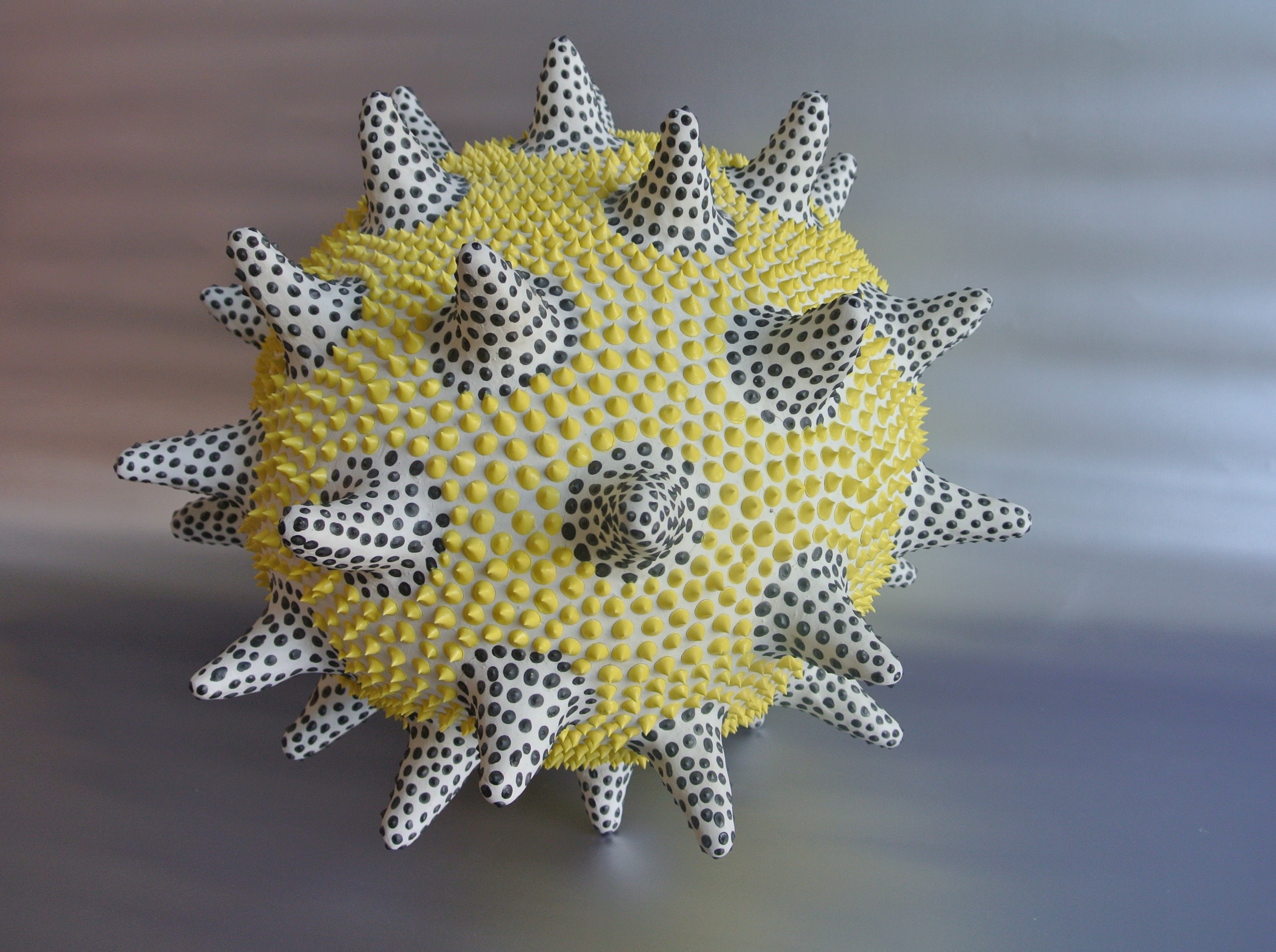 Toujours en recherche, elle déploie dans son œuvre un foisonnement de créativité évoquant un monde dans lequel micro-organismes, pollens et autres hydrozoaires se côtoient.