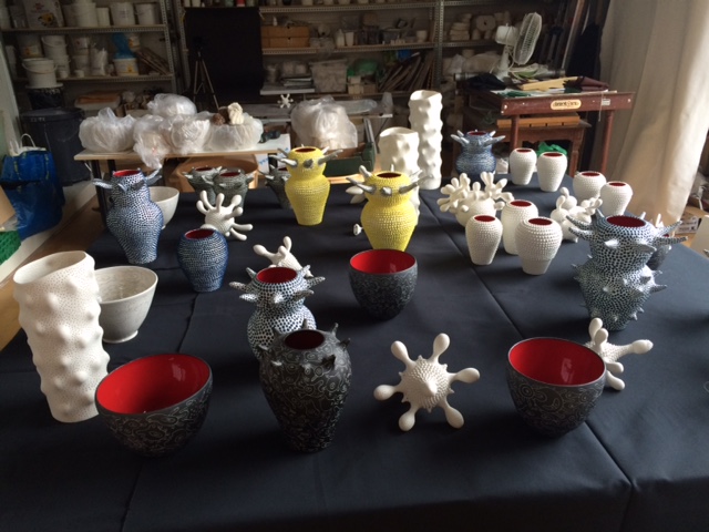 Annick Berclaz, céramiste plasticienne formée à Genève aux Arts Décoratifs, à l’Ecole supérieure d’Arts visuels et à l’Ecole supérieure d’Arts appliqués, section création d’objets.