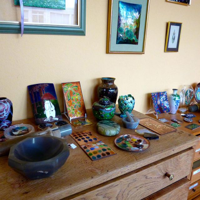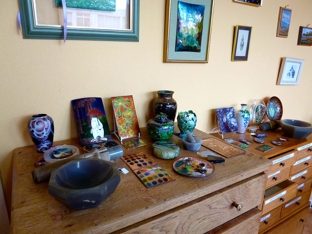 Depuis 2006 l’Atelier d’émail existe et réalise des pièces en émail grand feu, cloisonnées mains, champlevées, grisaille, miniature.