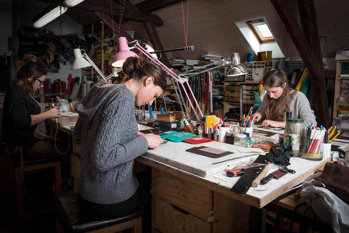 Unique formatrice en Suisse romande elle transmet sa passion à une nouvelle génération de maroquinières .