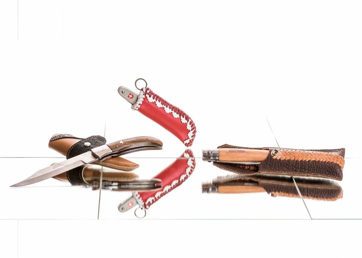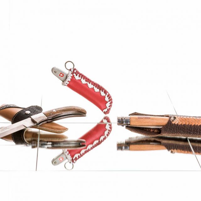 Les coutures sont parfois compliquées, à deux aiguilles. La découpe des pièces en cuir à l’aide d’une demi-lune requiert une maîtrise parfaite de cet outil extrêmement tranchant, les cuirs sont souvent très épais. Chaque article fabriqué est unique.